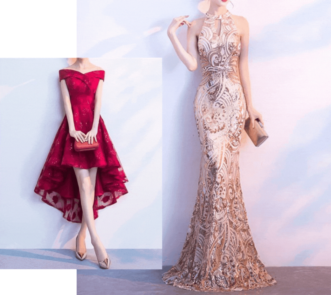 華やかなお祝いの席やパーティーシーンに映える、赤のロングドレスをご紹介します。
