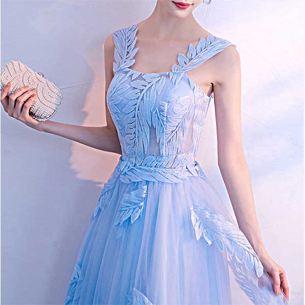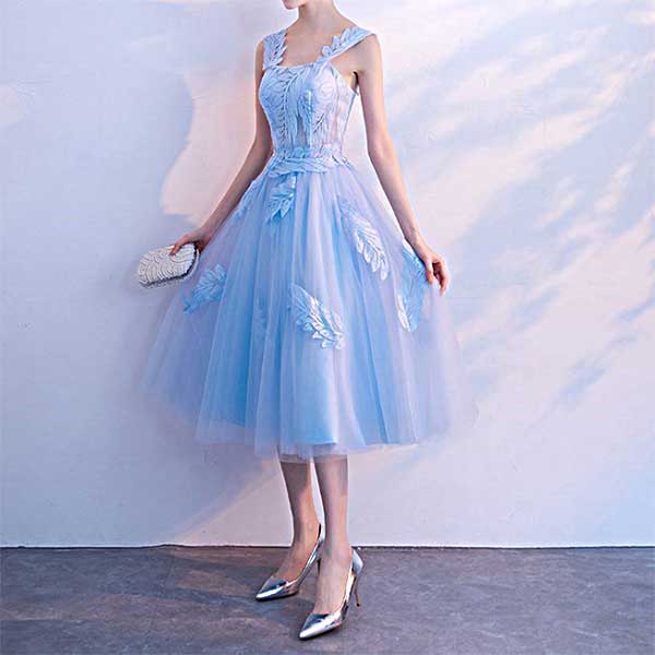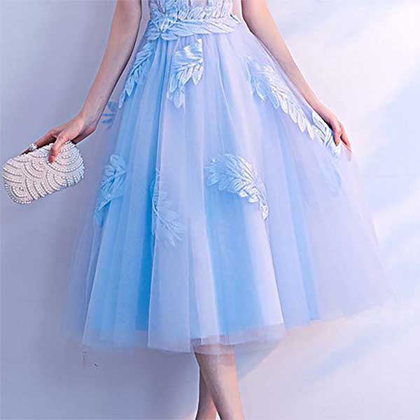リーフ柄のレースが大人可愛いAラインドレス。