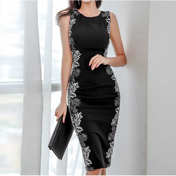 サイドにあしらったレースが縦のラインを強調、一枚で華やかに着映える美ラインワンピース 通勤からパーティ、イベント、お仕事などに 周りに差をつける装いがしたい時にお勧めです。