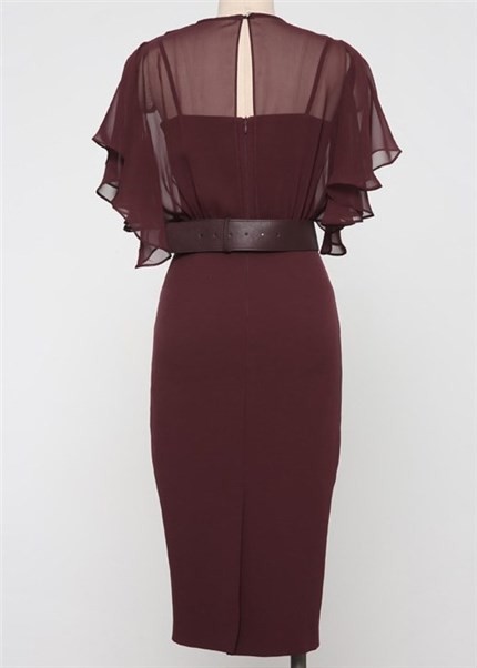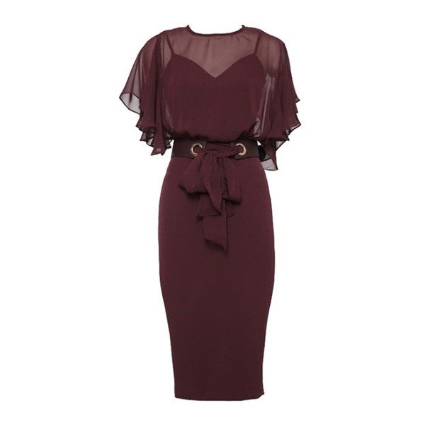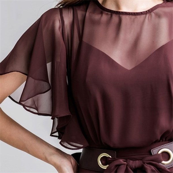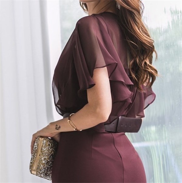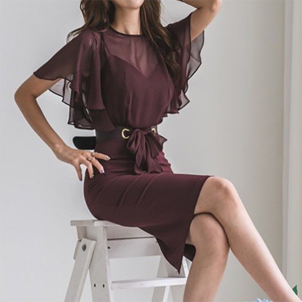 シフォンのフレアスリーブがフェミニンなワンピース。 通勤、オフィス、お仕事、パーティ、イベント衣装、などにお勧めです。